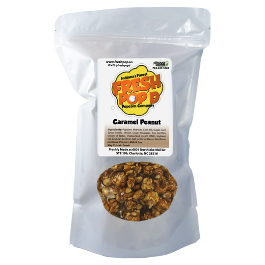 Roasted peanuts mixed with our classic caramel popcorn is the perfect combo. Crunchy caramel and peanuts are sure to satisfy your sweet tooth.